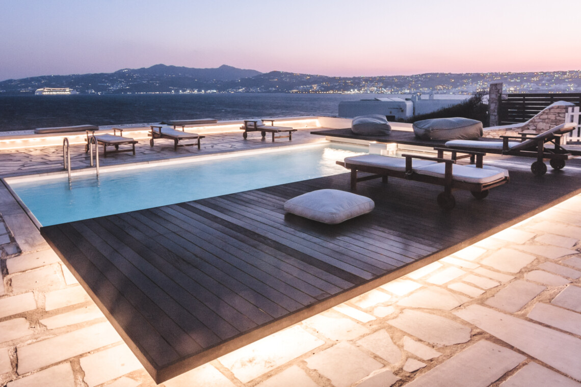 This villa is one of the very rare villas in Mykonos located within walking distance of Mykonos town. The Villa’s status as a luxurious, fascinating and unique property was highlighted in 2015 when it won the prestigious award for ‘Top Villa in Europe With a Private Pool’ in the World Luxury Hotel Awards.