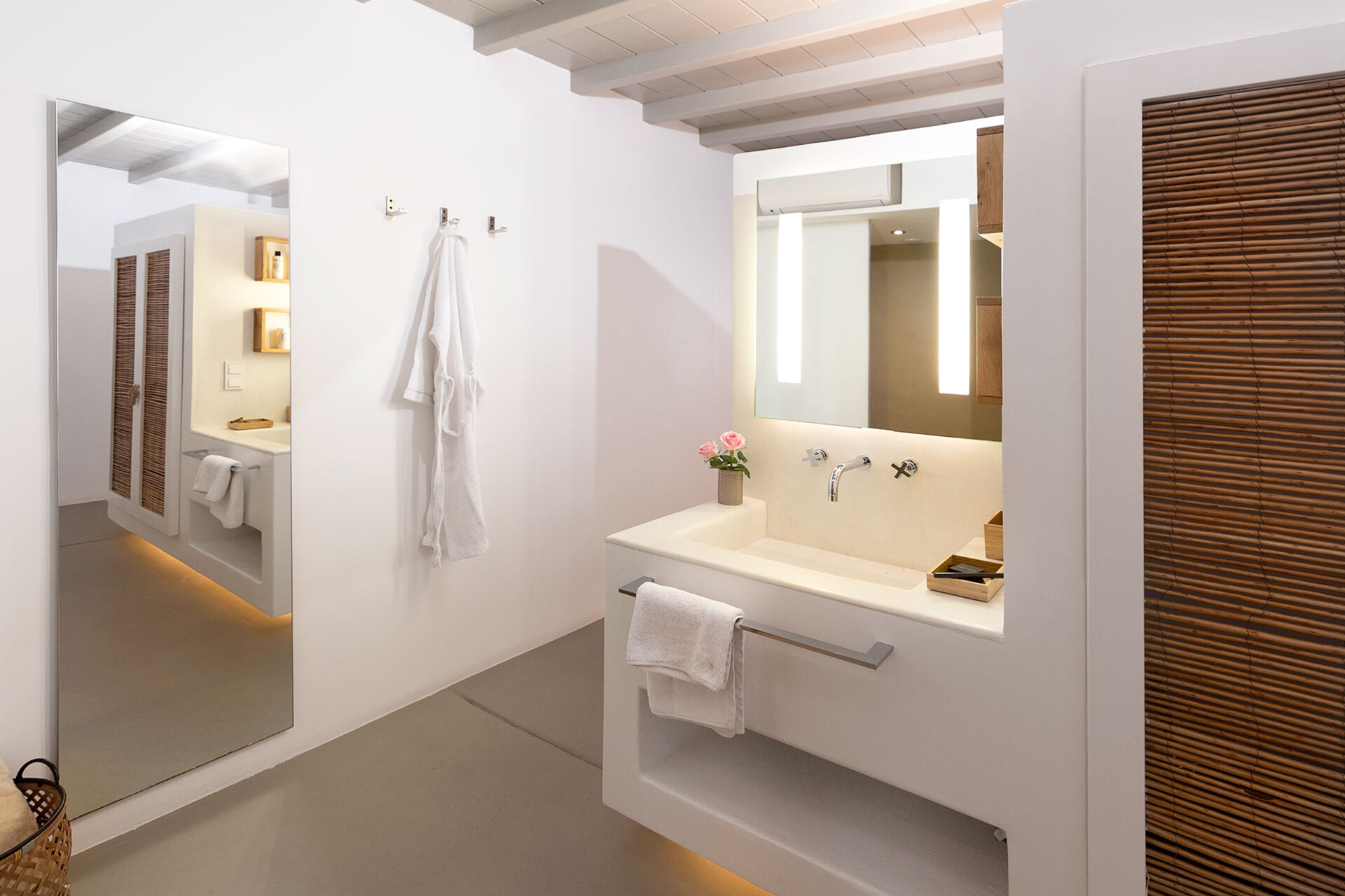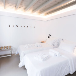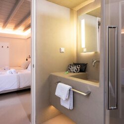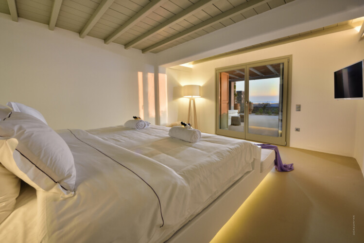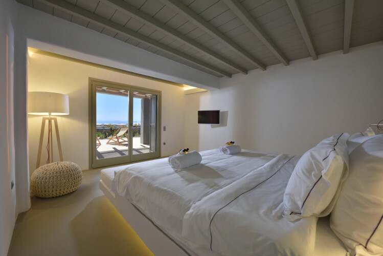 The twin of Villa Amethyst. A stunning, hillside Villa with spectacular views over Kounoupas and the Aegean. Cleverly designed with the guests of the 2 master bedrooms enjoy a private terrace, this superb ground-level home is a sun worshipper’s dream.