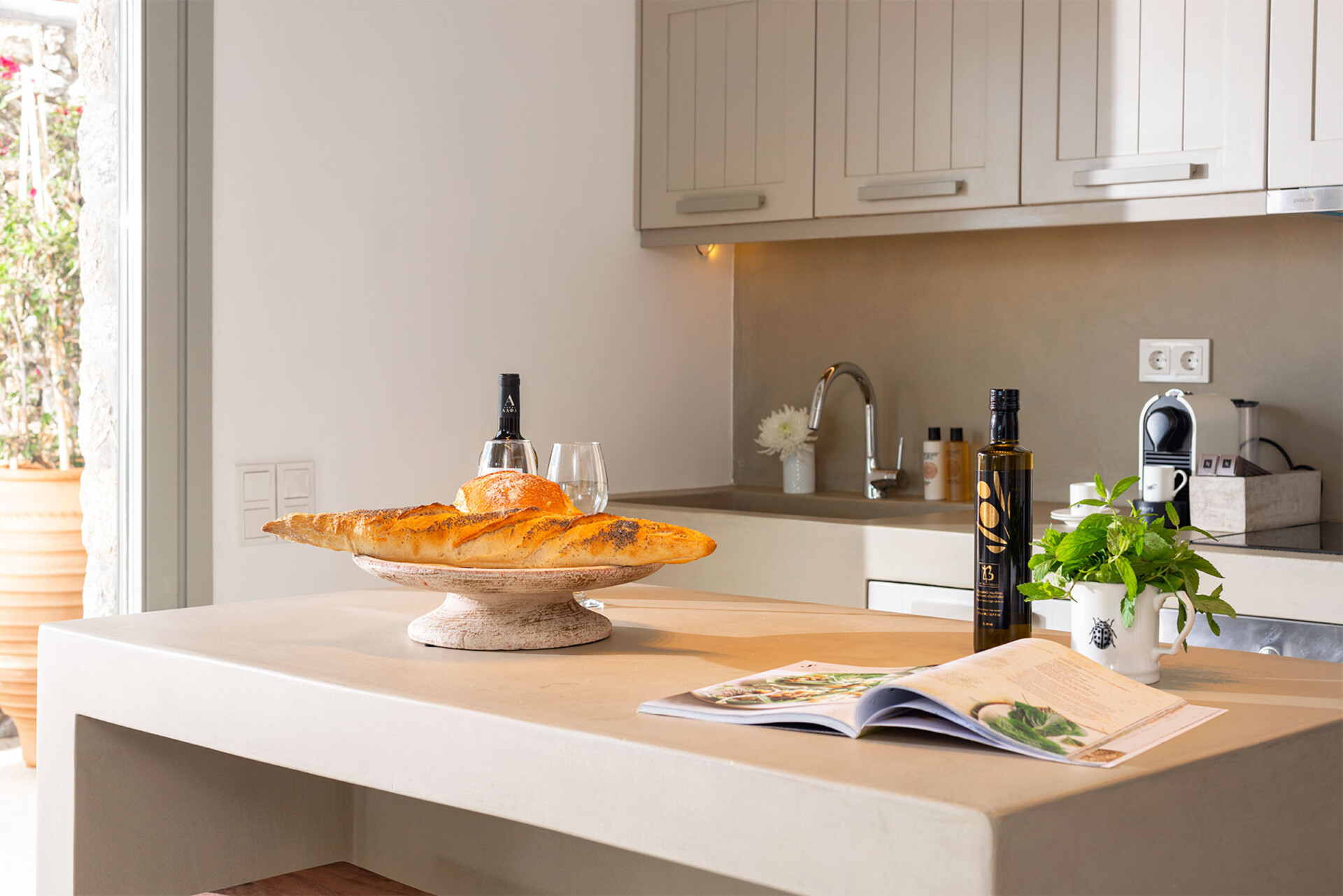 A private Olive tree garden with flowering foliage adds to Mediterranean feel of this sophisticated and fully equipped dream holiday home.