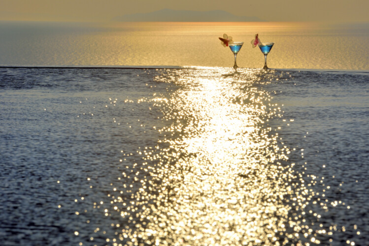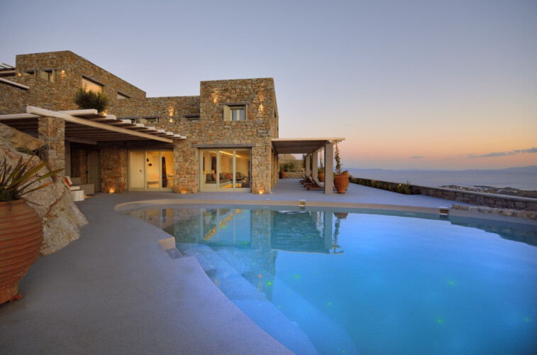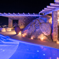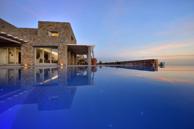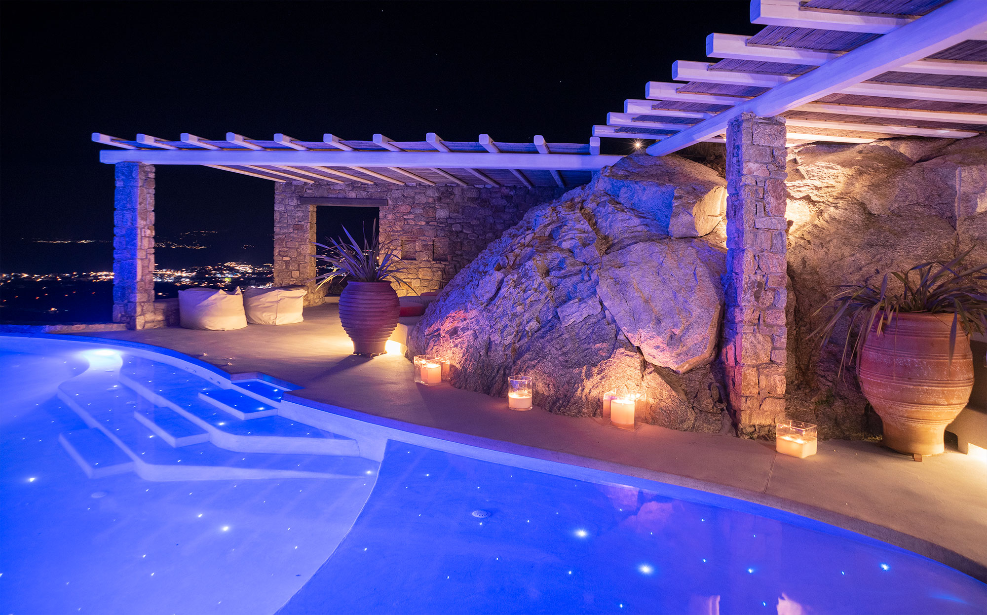 Wow factor: finer optics magically bring a starry Mediterranean sky into your pool as night falls on another perfect Mykonos day