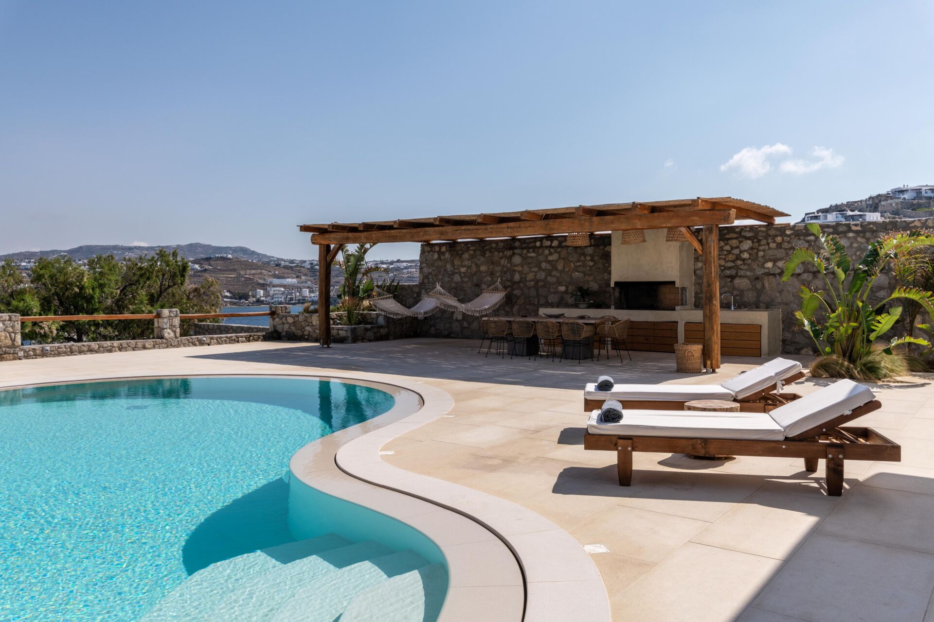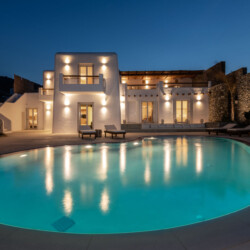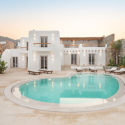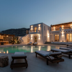 Nothing beats the kinglike experience of residing in one of the most luxurious villas on Mykonos. The 1000m2 property includes a man-built paradise of 500m2, blessed with the most incredible sea views and the lights of Mykonos town ahead.