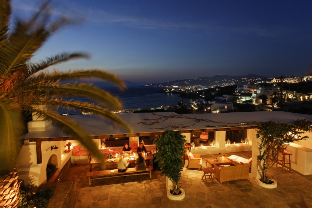 A truly beguiling, old-school Mykonos villa dramatically set on a cliff overlooking Ornos, with panoramic views of Baos island and Mykonos Town
