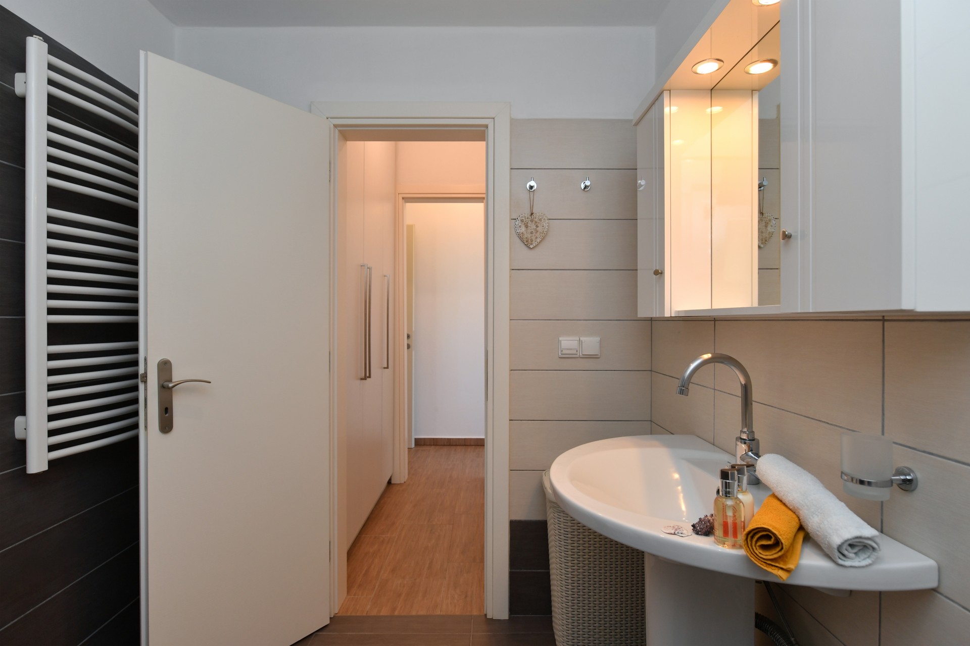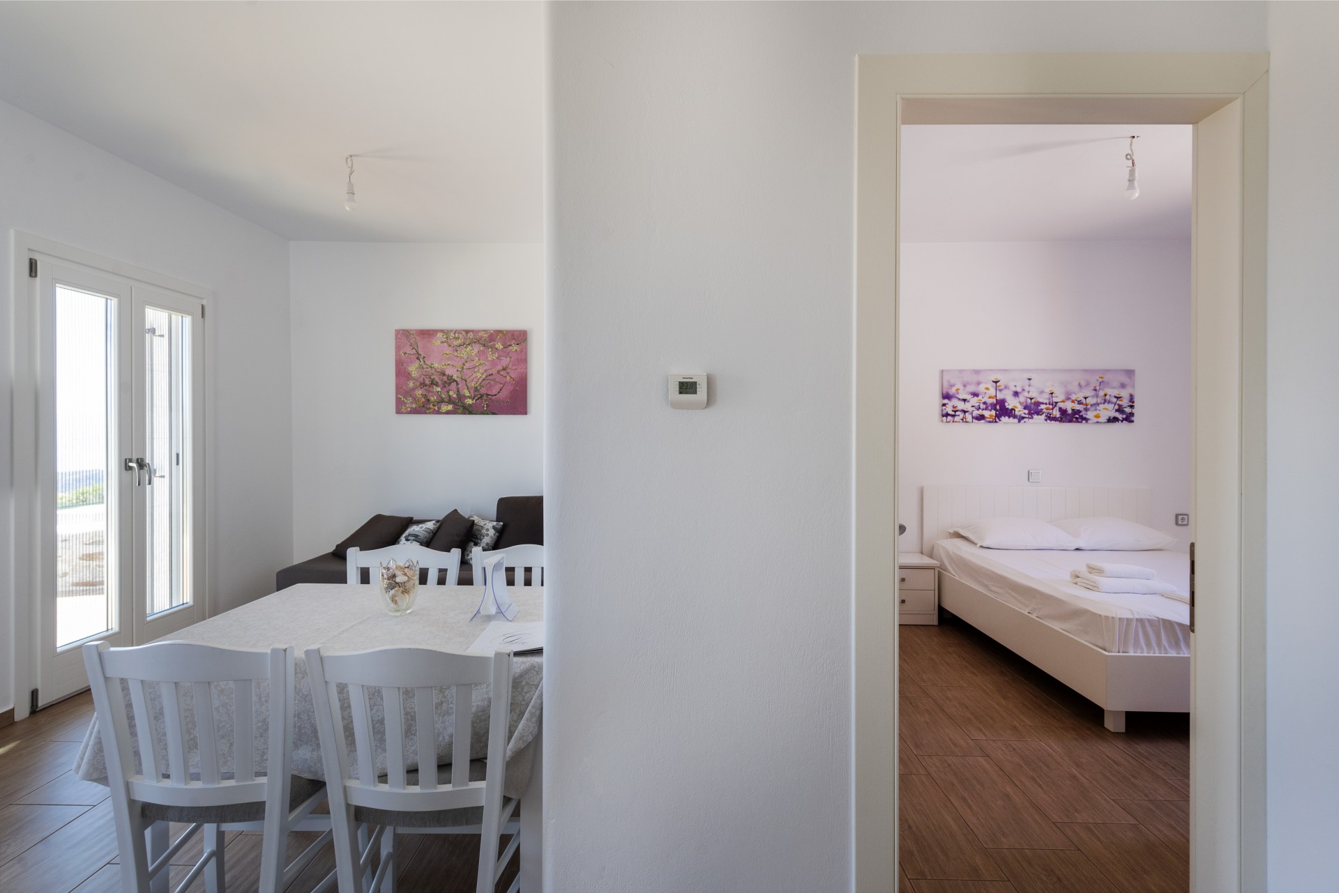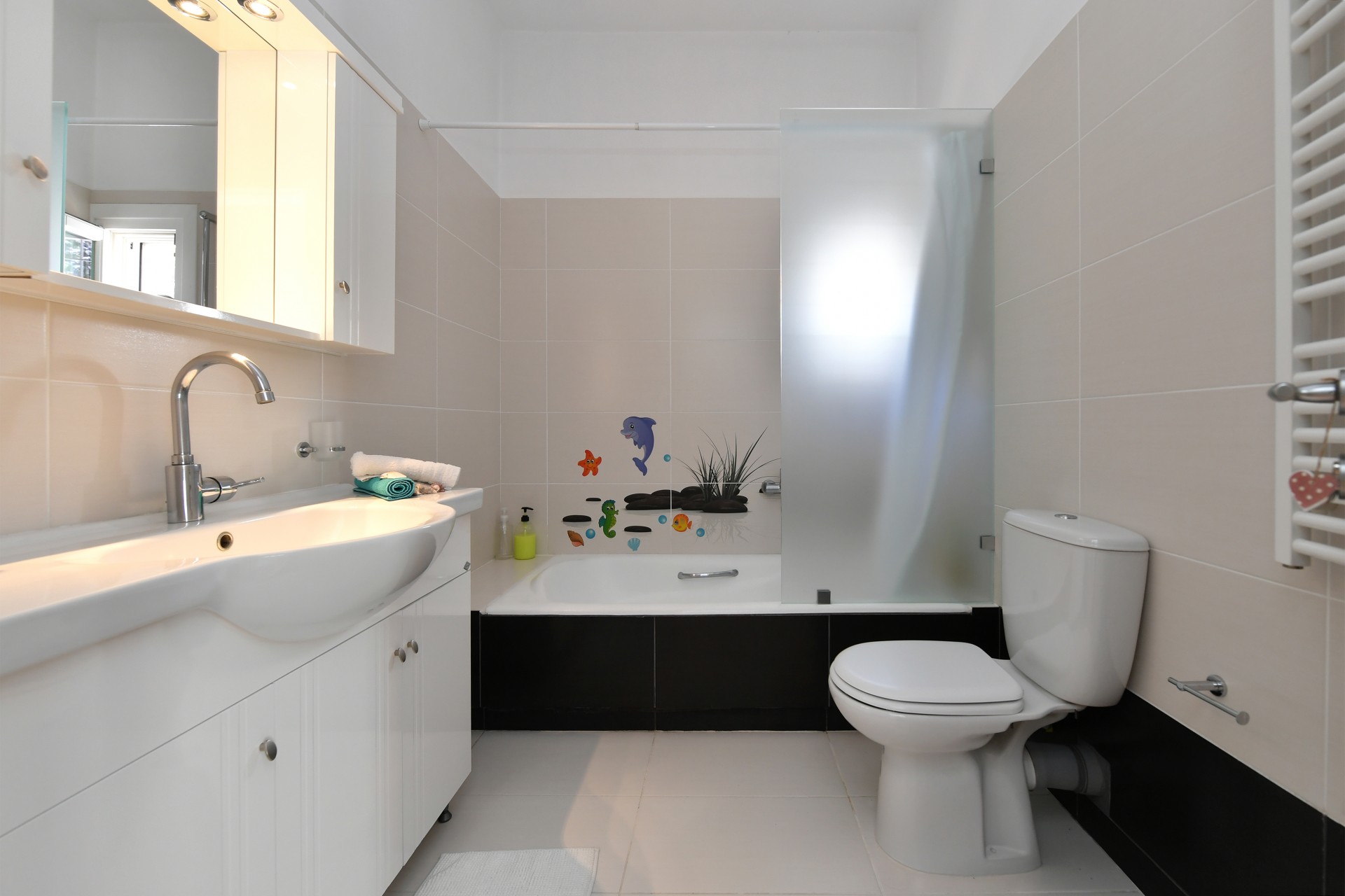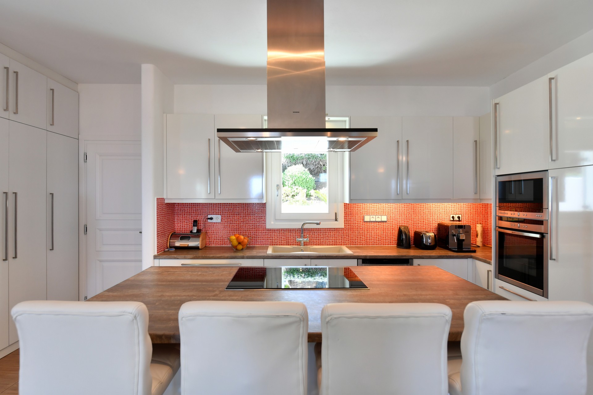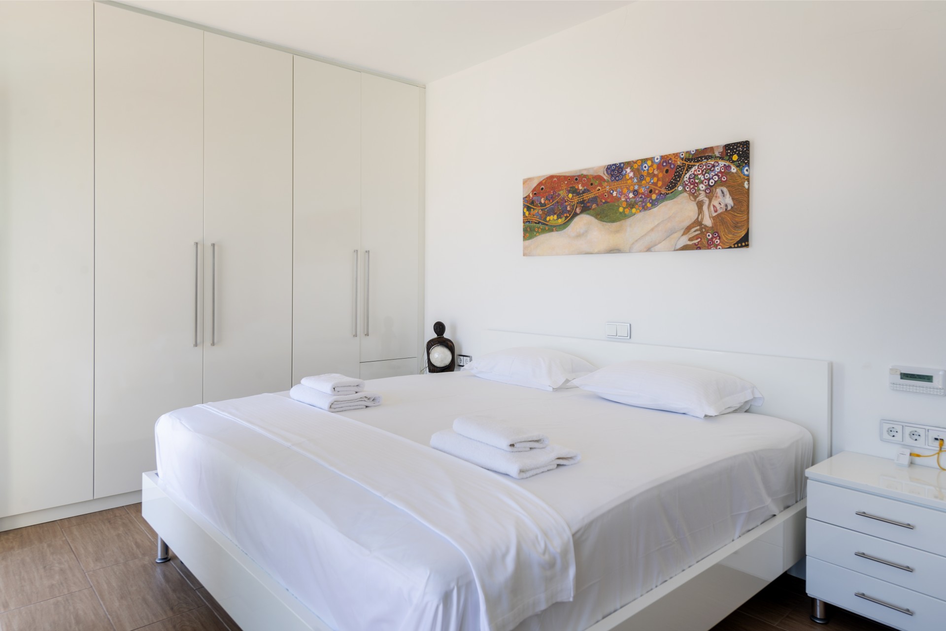 The property is built on ground level and consists of a main and a guest house. In the main house it is located an open plan kitchen with a living room and a dining table, two master bedrooms with private bathrooms and an additional double bedroom with a toilet.