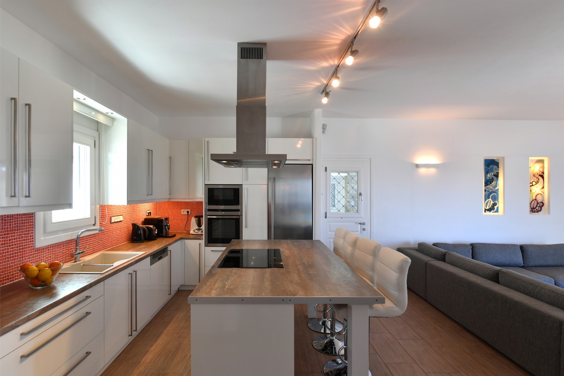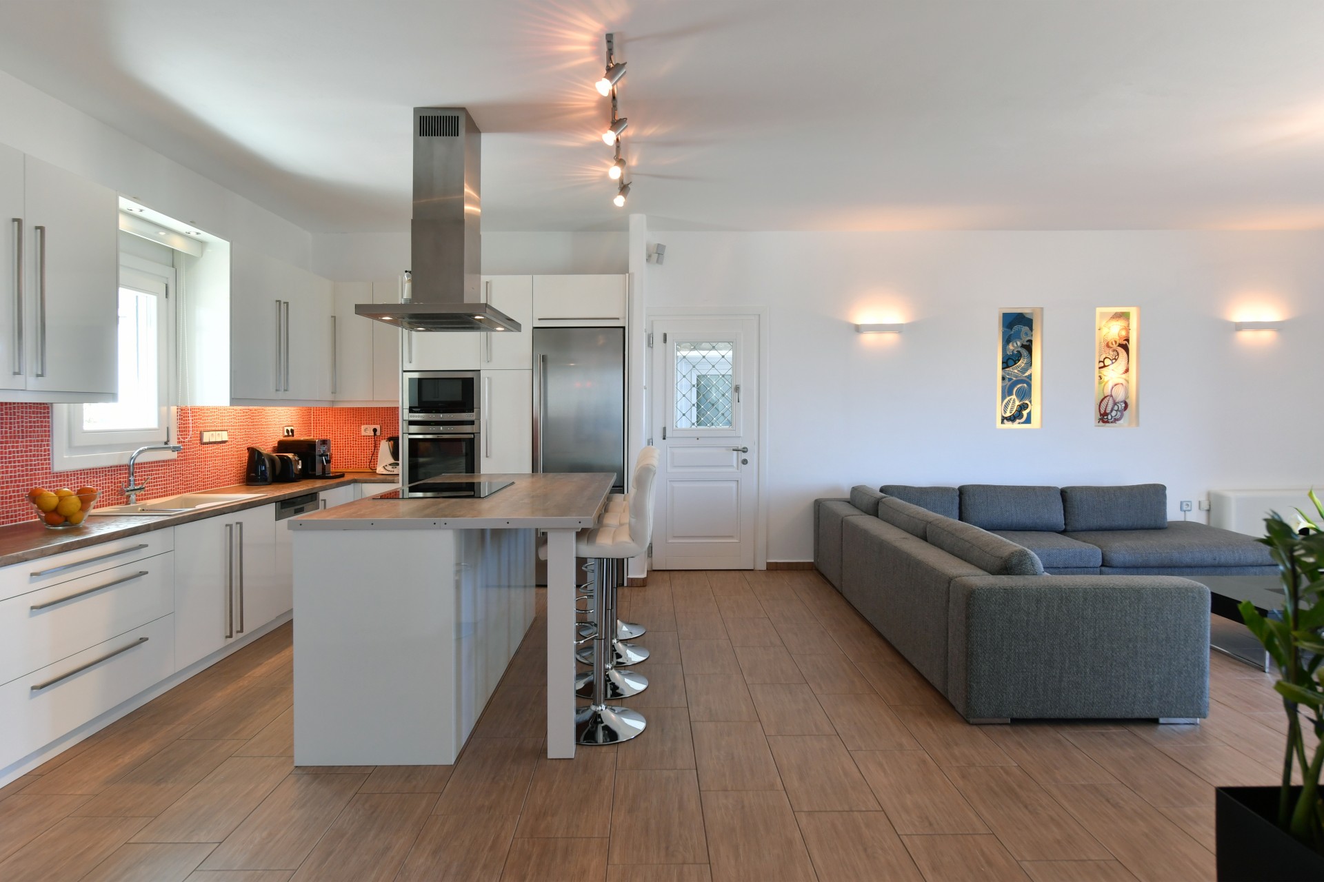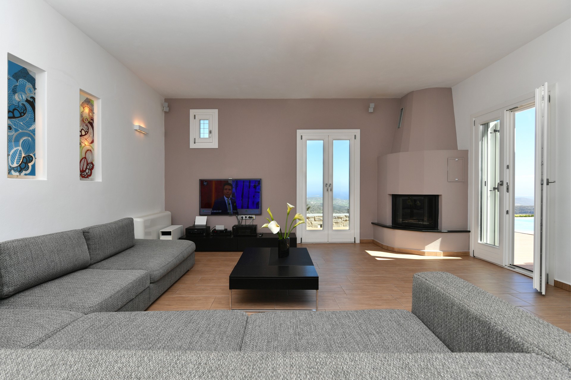 The Villa combines a refreshing mountain ambiance with modern amenities and elegant luxury,  inspired by natural elements, wood, stone, marble and ample natural light, offering a liberating sensation of Greek island home.