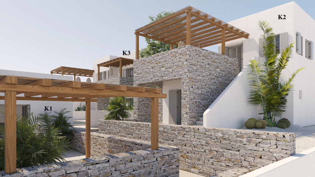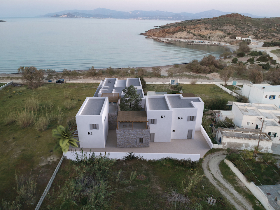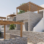 The villa is part of the ongoing Project Molos III complex, located in front of the sandy paradise of Molos beach at the eastern part of the island. The 115 sqm villa consists of two levels, the ground floor where two master bedrooms with private bathrooms and a guest toilet are found, and the first floor having a kitchen and living room with direct access to the outdoor terrace and the small pool. The project will be ready before the summer of 2021.