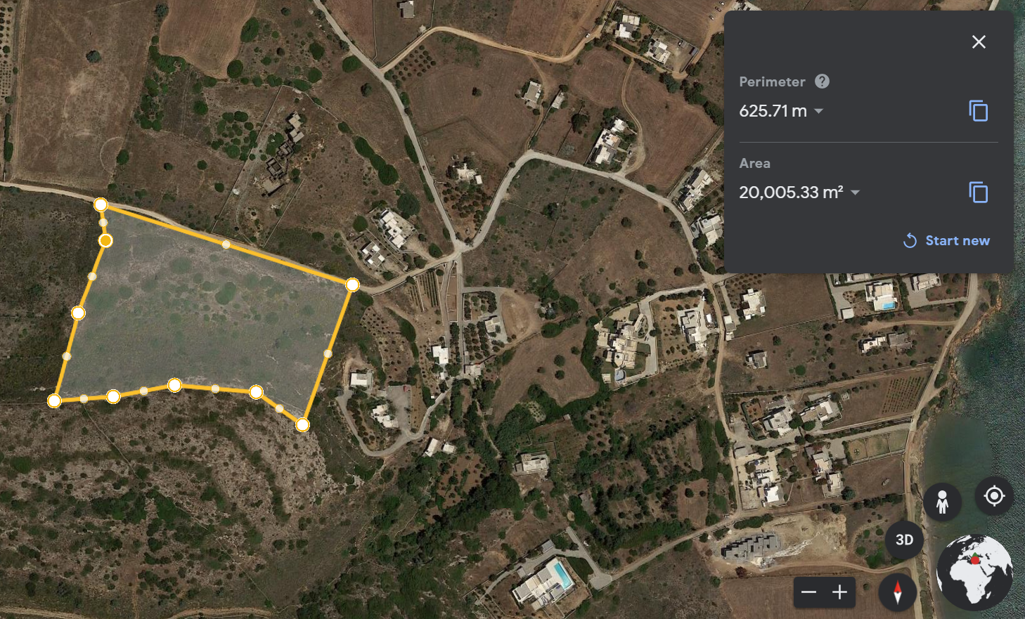 Land of plot on the hillside of Ampelas, with panoramic view of the area and beach of Ampelas, covering a total area of 20.505sqm. Of the total area, 4.355sqm has been classified as wield area and cannot be modified. The remaining 16.150sqm area has been categorized as even and buildable.