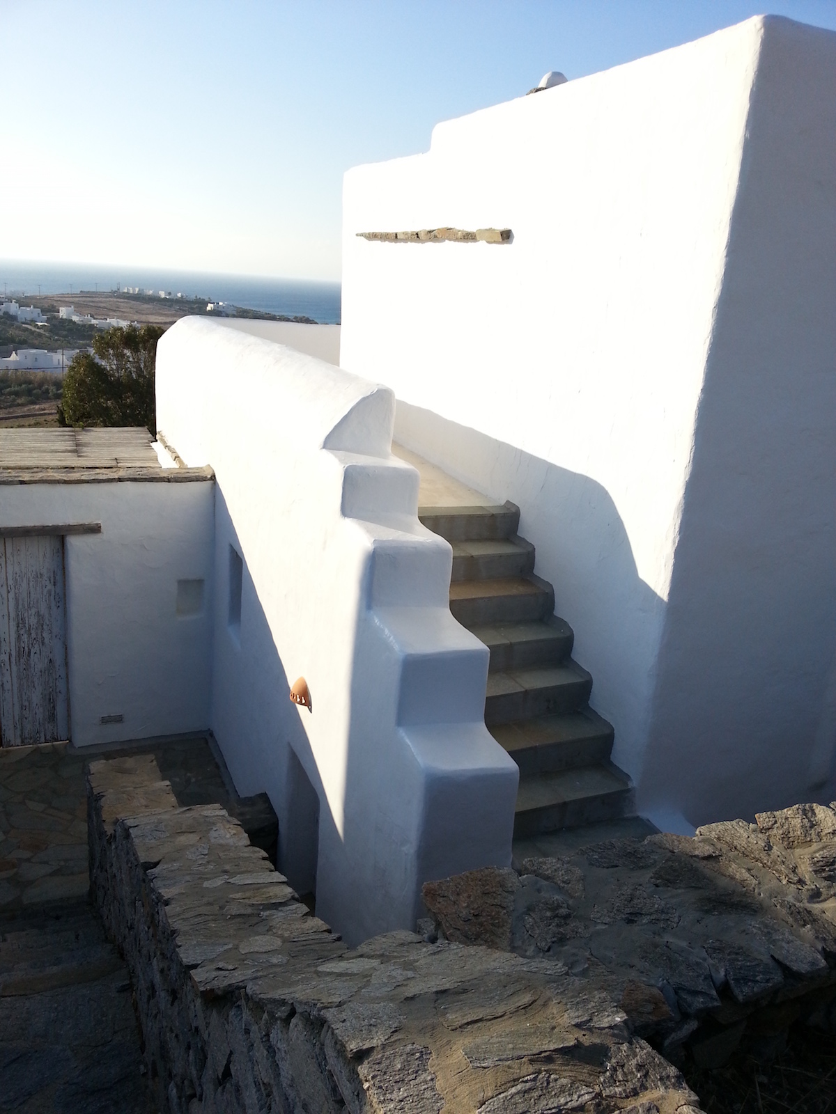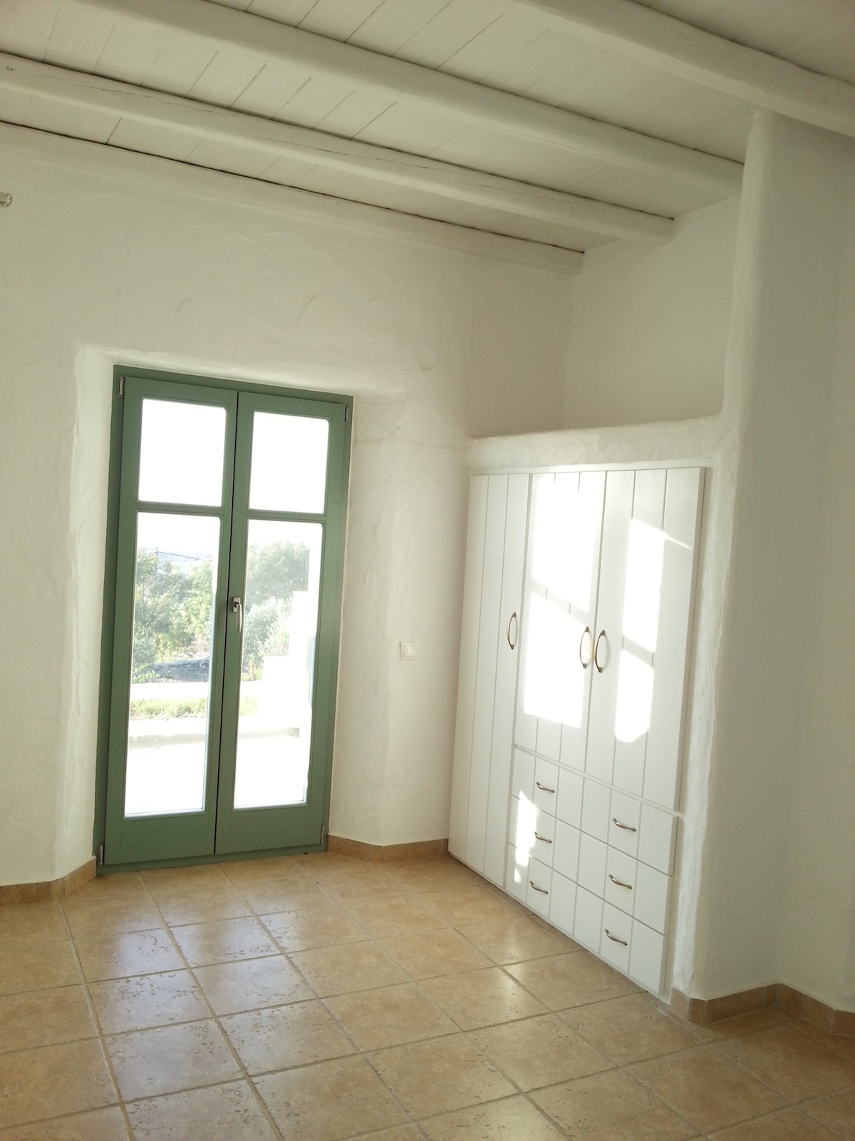 The eye pleasing view of the traditional independent house, overlooks Golden Beach, and five Aegean islands. It has a total area of 122sq.m. and consists of 3 bedrooms, 2 baths, living room with a fire place a kitchen with built-in cabinets and a storage area. The view is endless of the all around verandas. The main veranda has a pergola, faces south and is all shaded after 5:00 pm in the summer, a perfect spot for relaxation. The distance to Golden Beach is 500 m.