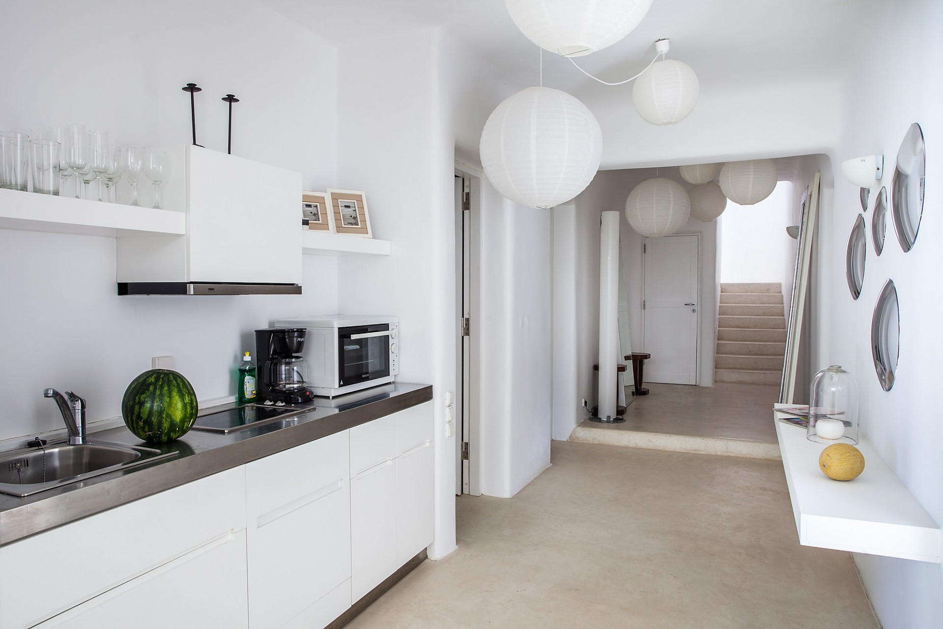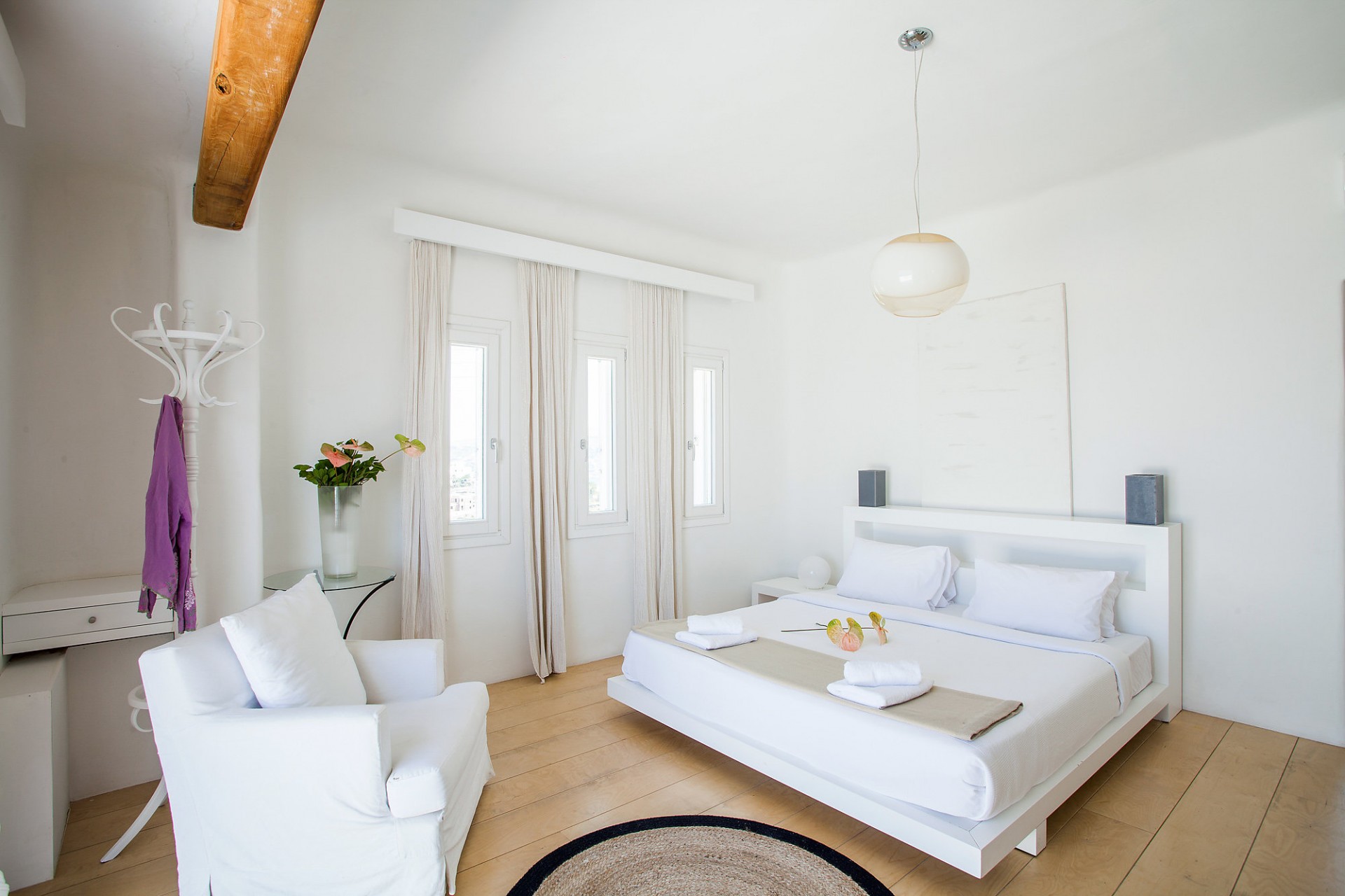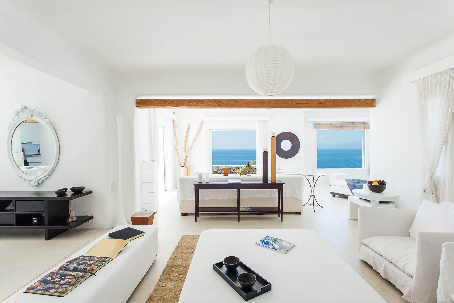 A spacious, airy and sophisticated interior elegantly combine period touches with the best of contemporary Mykonos style and can house up to ten guests in luxurious comfort.
