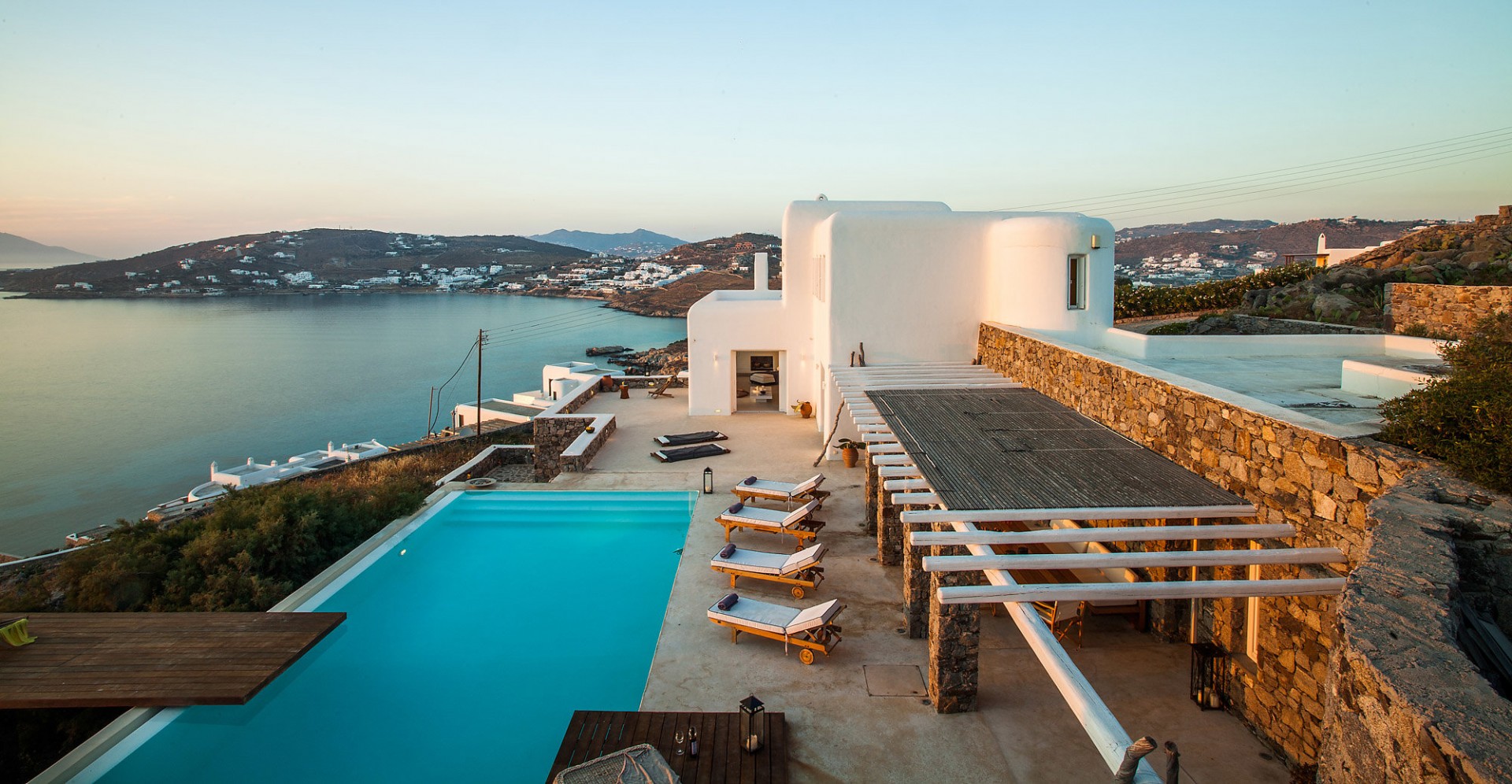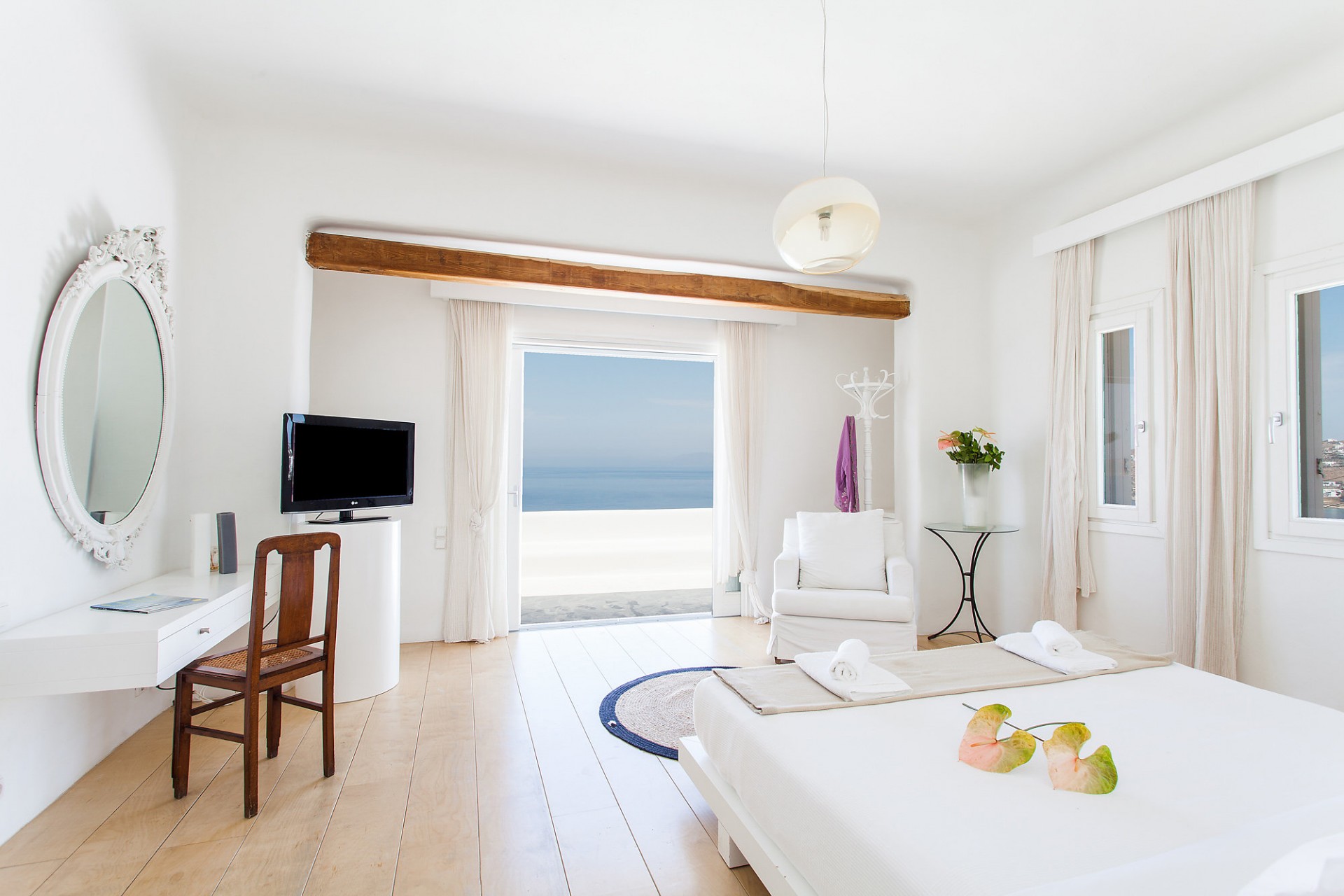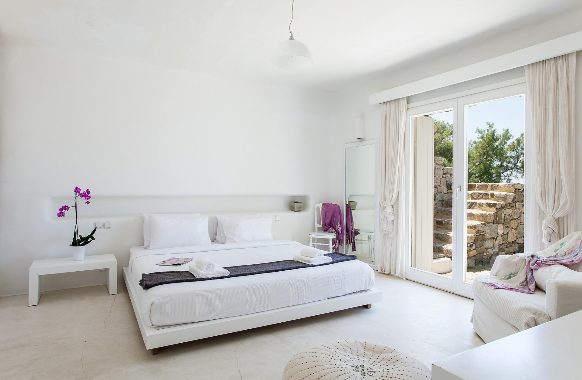 A spacious, airy and sophisticated interior elegantly combine period touches with the best of contemporary Mykonos style and can house up to ten guests in luxurious comfort.