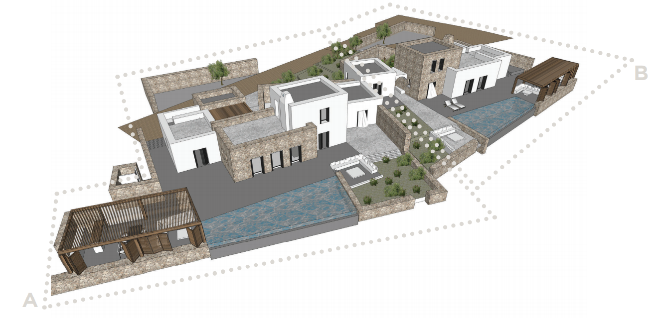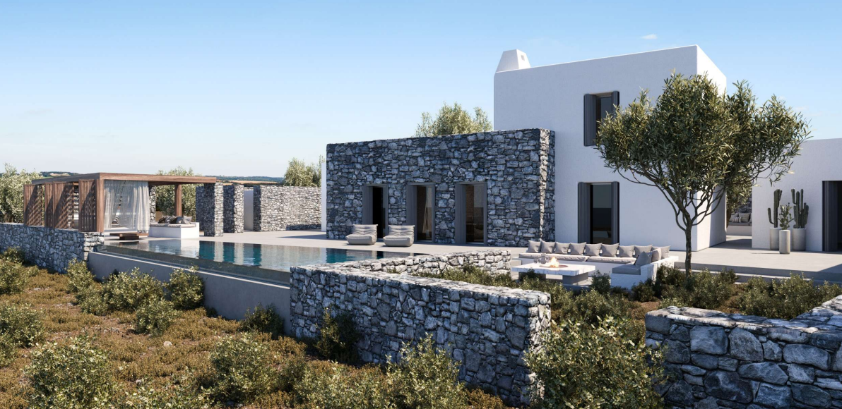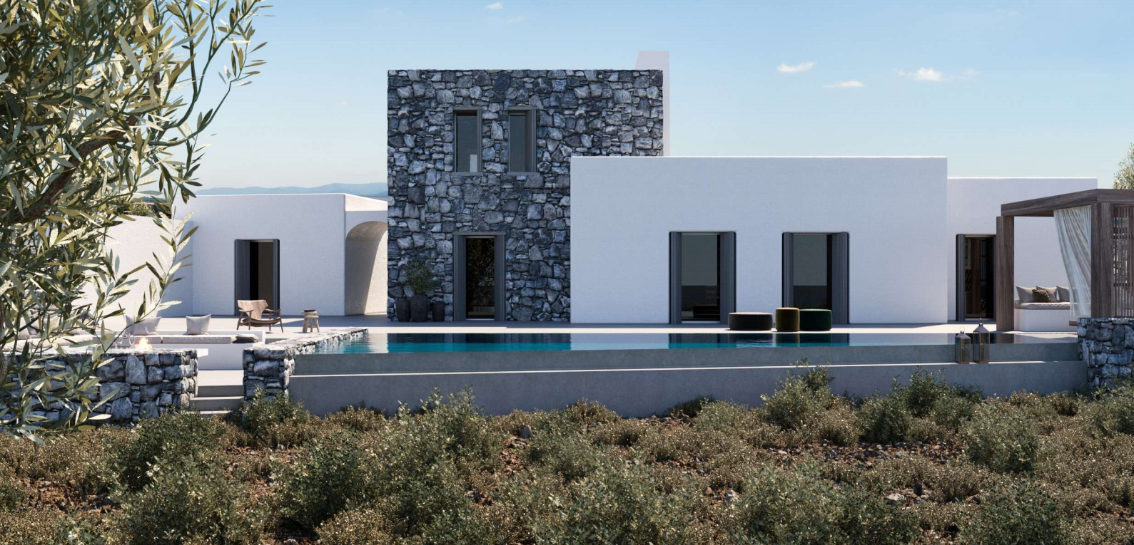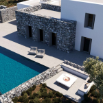 Designed by a renowned arhcitect, the two villa complex offers a stylish, minimalist Cycladic character with a combination of stone and whitewashed walls, blending with the island’s landscape. Located right in front of Filizi beach, the villa has unobsructed views of the sea and the island of Naxos.